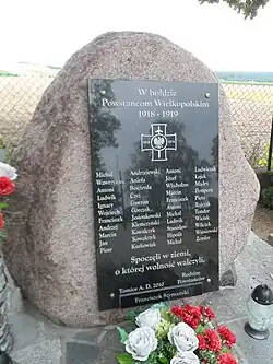 A plaque commemorating the participants of the Greater Poland uprising (1918–1919) from Tomice and its environs.