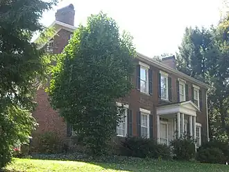Tomlinson Mansion is a historic home located at Williamstown, Wood County, West Virginia. It was built in 1839, and is a two-story, L-shaped brick building with a slate-covered gable roof. The front facade features a small, pediment-like roof above the front door that is supported by four rectangular columns. It is the oldest home in Williamstown and its most notable guest was John James Audubon, who stayed at the Tomlinson Mansion while collecting material on the bluebird and other birds native to the area.[2]