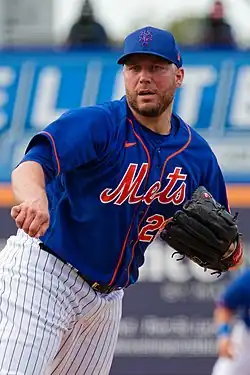 29. ^ @Mets (February 14, 2021). "We have signed LHP Mike Montgomery and RHP Tommy Hunter to minor league contracts and invited both to Major League Spring Training" (Tweet) – via Twitter.