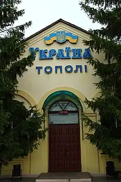 A railway line runs north through the village and across the border to Urazovo in Russia. Since June 24, 2017, there has been a border service point named after the town Topoli (border checkpoint), which was opened by Interior Minister Arsen Avakov and NSDC Secretary Oleksandr Turchynov.
