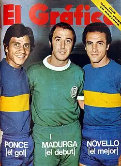 Fltr: Ramón Ponce, Norberto Madurga, and Nicolás Novello. Brazilian club Palmeiras visited Argentina in 1972 to play the "Copa del Atlántico" v Boca Juniors