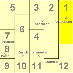 Rooks County was established with four townships: Bow Creek, Lowell, Paradise and Stockton. That number increased to seven by 1878[2] and twenty three in 1925. The twenty three townships were in place until 1971, when the number was reduced to the current twelve townships.[3]