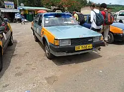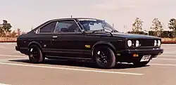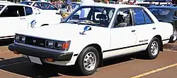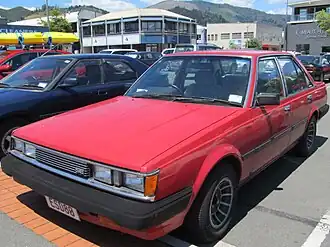 In its third incarnation, the Carina followed the fashion of the time with a still more angular overall look and four square headlights.[20] The Coupé was no longer a hardtop and was updated with halogen rectangular headlights, which were also installed on the Carina Surf (wagon) and were used in export, while the Carina Van received twin, round headlamps set in a black plastic surround.[1][21] The car followed its predecessors in retaining a front-engine rear-wheel-drive configuration even though by then competitor manufacturers were following a trend of switching to front-wheel drive in this class. The third generation was first released two months after the related Celica, in September 1981, and was the last Carina to use rear-wheel drive.[22] More precise rack and pinion steering replaced the recirculating ball used in previous generations; the A60 Carina used a MacPherson struts up front and a five-link, solid rear axle – except for the more powerful, fuel injected versions which have independent (semi-trailing arm) suspension at the rear.[1] The RWD Corona shared its chassis with this vehicle, when it was updated the succeeding year. The Carina was famously used by private teams racing for Japan in the Dakar Rally in the two-wheel-drive class for both 1981 and 1982. The Carina managed to achieve four championships in the marathon class divisions.