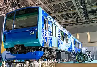 The Toyota HYBARI (Hydrogen-Hybrid Advanced Rail vehicle for Innovation) is a train made in partnership with JR East and Hitachi. It will be a 100% hydrogen powered train that would run on the Tsurumi Line and Nambu Line. It is an FV-E991 series train with two cars, and has a top speed of 100 km/h (62 mph)[1]