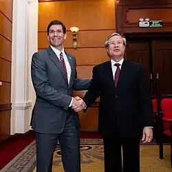 On 1 August 2017, Trần Quốc Vượng was assigned to be a Permanent Member of the Party Central Committee's Secretariat while Đinh Thế Huynh went for medical treatment.[18][19] On 2 March 2018, the Politburo decided to dismiss Đinh Thế Huynh from holding the position of Permanent member of the Central Committee’s Secretariat and Chairman of the Central Theoretical Council of the Communist Party of Vietnam for long-term medical treatment.[20] On 5 March 2018, the Politburo issued a decision to appoint Trần Quốc Vượng a Permanent member of the CPV Central Committee’s Secretariat, succeeding Đinh Thế Huynh.[21]