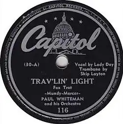 - ^ "78 RPM - Paul Whiteman - Trav'lin' Light / All for You - V Disc - USA - 286". Archived from the original on 2016-08-17. Retrieved 2016-06-30.