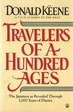 Travelers of a Hundred Ages is a nonfiction work on the literary form of Japanese diaries by Donald Keene, who writes in his Introduction that he was introduced to Japanese diaries during his work as a translator for the United States in World War II when he was assigned to translate captured diaries of soldiers; he found them moving enough that he continued to study that genre. Keene's book takes the form of self-contained long chapters (originally published as independent essays in Japanese in Asahi Shimbun) that deal with a single diary, each of which is valuable in its own right as a literary work [1] This treatment is especially apparent when Keene writes of Matsuo Bashō's travel diaries, such as The Narrow Road to the North, or provides a window into an author's life, such as in the case of Fujiwara no Teika's Meigetsuki ("Chronicle of the Clear Moon").