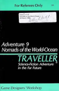 Traveller Adventure 9: Nomads of the World-Ocean is a 1983 role-playing game adventure for Traveller, written by J. Andrew Keith and William H. Keith Jr., published by Game Designers' Workshop. Nomads of the World-Ocean deals with attempts to gather evidence of corporate wrongdoing on an ocean-covered world.