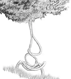 Some species of trees exhibit a botanical phenomenon known as inosculation (or self-grafting); whether among parts of a single tree or between two or more individual specimens of the same (or very similar) species. Trees exhibiting this behavior are called inosculate trees.[3]