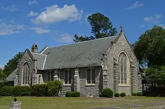 Trinity Lutheran Church is a historic Lutheran church located at 390 Hampton Street in Elloree, Orangeburg County, South Carolina. It was built in 1914, and is a one-story, granite Late Gothic Revival style cruciform plan church building. The building replaced a wood-frame church built in 1889 that was destroyed by fire in 1913 after being struck by lightning. It features 16 granite and limestone buttresses and distinctive custom limestone arched door and window surrounds.[2][3]
