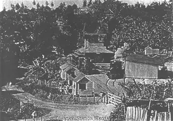 Troja railway station opened in 1896,[1] closed in 1975,[2] reopened in 1977 and closed for good in 1978. It was on the Bog Walk to Port Antonio branch line, 31 miles (50 km) from the Kingston terminus (in Jamaica),[4] and served the surrounding agricultural community, providing a means for bananas to reach and be exported from Port Antonio.[1] It was vandalised some time after closure.[3]