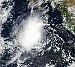 ![]() Tropical Storm Sonia approaching Mexico at peak intensity on November 3 | |