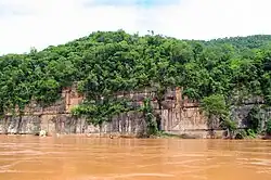 The Tsiribihina then flows westward, cutting a steep and winding gorge through the Bemaraha Plateau, a limestone formation that extends north and south along the western edge of the Betsiriry Plain.[4] As the river emerges from the Bemaraha Plateau it widens and meanders.[4] There are several shallow lakes along the lower course, including Lake Kimanomby near Ambohibary and Lake Masoarivo near Masoarivo.[7]