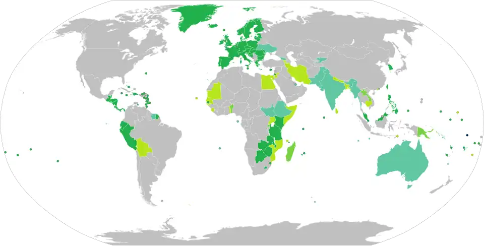 Tuvaluan nationality law is regulated by the 1986 Constitution of Tuvalu, as amended; the 1979 Citizenship Ordinance, and its revisions; and various British Nationality laws.[1][2][3] These laws determine who is, or is eligible to be, a national of Tuvalu. Tuvaluan nationality is typically obtained either on the principle of jus soli, i.e. by birth in Tuvalu or under the rules of jus sanguinis, i.e. by birth abroad to parents with Tuvaluan nationality.[4] It can be granted to persons with an affiliation to the country, or to a permanent resident who has lived in the country for a given period of time through naturalisation.[5] Nationality establishes one's international identity as a member of a sovereign nation.[6] Though it is not synonymous with citizenship, for rights granted under domestic law for domestic purposes, the United Kingdom, and thus the Commonwealth, have traditionally used the words interchangeably.[7]