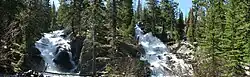 Twin Falls are a pair of waterfalls located in Glacier National Park, Montana, US. The falls descend from outlet streams from the surrounding peaks and No Name Lake and split into two waterfalls as they cascade 80 feet (24 m) into Two Medicine Valley. The falls can be reached by a hike of less than a mile west of Two Medicine Lake.[2][3]