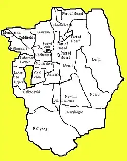 | Leigh | Containing the ruins of Leamakevoge monastery |