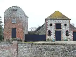 Manor Farmhouse, at the north entrance to the village, is a 4-bay 2-storey house from the early 18th century, extended and altered in the 19th.[5] In the Sutton Veny part of the village, Ashbys (formerly Tytherington Farmhouse) carries a date of 1771;[6] nearby are a dovecote dated 1810[7] and a granary and stable of similar date.[8]