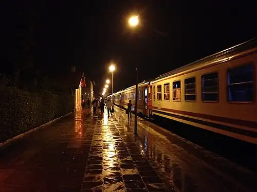 Uşak railway station (Turkish: Uşak garı) is a railway station in Uşak, Turkey and is the only station within the city. TCDD Taşımacılık operates a daily inter-city train from İzmir to Konya and a daily regional train to İzmir.[1]