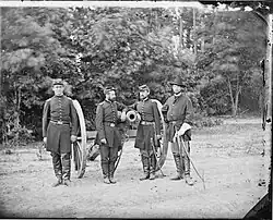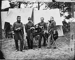 Officers of Battery C, 3rd U.S. Artillery, 1862. L-R: Meinell, Gibson, Pendleton, and Fuller. Photo by James F. Gibson. Library of Congress