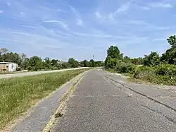 The portion of the DuPont Highway between Dover and Wilmington saw increased traffic from connecting interstate roads and summer travelers, prompting the Delaware State Highway Department (DSHD) to consider widening the highway in 1925.[28] A year later, the department suggested the Philadelphia Pike be widened along with the DuPont Highway between State Road and Wilmington. This proposal included widening the bridge over a Pennsylvania Railroad line (now the Jack A. Markell Trail) in Farnhurst that was built in 1902.[29] US 13 was widened to four lanes between State Road and Wilmington and between Shellpot Park and Bellevue Quarry along the Philadelphia Pike in 1927.[25][30] The same year, the department recommended expanding the road between St. Georges and State Road into a divided highway.[30] In 1928, the widening of Philadelphia Pike was completed.[35] In 1929, the portion of the highway between St. Georges and State Road was widened into a divided highway.[25][36] The department recommended widening the part of US 13 between Delmar and Dover in 1930 as it was one of the main routes across the Delmarva Peninsula. In addition, plans began to widen the route into a divided highway between Drawyers Creek north of Odessa and St. Georges.[34] The divided highway portion of US 13 between Drawyers Creek and St. Georges was completed in September 1931. Also, work on widening the route to a divided highway between Fieldsboro and Drawyers Creek and from State Road to Wilmington began. The same year, recommendations began to extend the divided highway portion of US 13 south to Dover.[37]
