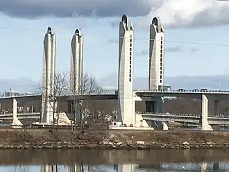 The Maine–New Hampshire Interstate Bridge, carrying the bypass and railroads over the Piscataqua River, opened to traffic on November 8, 1940.[4]