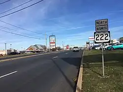 In 1924, the William Penn Highway was designated as PA 3 with the establishment of the first state route numbers in Pennsylvania.[5] With the establishment of the U.S. Highway System in 1926, the route heading from Reading southwest to Lancaster was designated as US 222 while the route heading from Reading to Allentown along the William Penn Highway was designated as part of US 22, which ran concurrent with PA 3.[6][7] In 1927, PA 41 was designated concurrent with US 222 between Lancaster and Reading and PA 42 ran north–south through downtown Reading.[8]