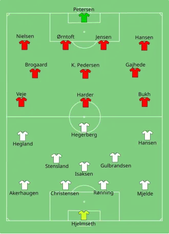 - ^ a b "Tactical Line-up – Norway-Denmark" (PDF). UEFA.com. Union of European Football Associations. 25 July 2013. Archived from the original (PDF) on September 27, 2013. Retrieved 25 July 2013.
