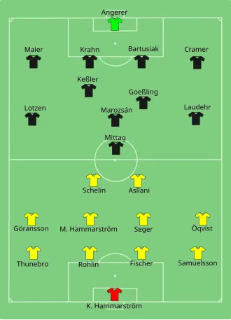 - ^ a b "Tactical Line-up – Sweden-Germany" (PDF). UEFA.com. Union of European Football Associations. 24 July 2013. Archived from the original (PDF) on September 25, 2013. Retrieved 24 July 2013.