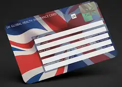 The UK Global Health Insurance Card (GHIC) is a card issued by the NHS Business Services Authority on behalf of the Department for Health and Social Care in the United Kingdom. It is issued free of charge, and is valid for 5 years, to anyone covered by the social security system of the United Kingdom and provides evidence of entitlement to the provision of healthcare services under the UK's reciprocal healthcare agreements with the European Union, Switzerland,[1] Norway,[2] Iceland,[2] Liechtenstein,[2] Montenegro,[2] Guernsey and some British Overseas Territories.[3][2] It is also accepted by Australia as proof of eligibility to enrol in Medicare.[4]