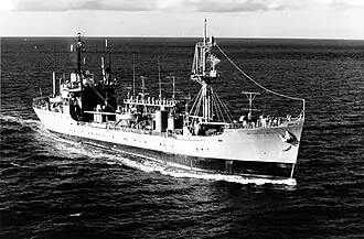 | Refit | as a Miscellaneous auxiliary (technical research ship) at Maryland Shipbuilding and Dry Dock Company, Baltimore, Maryland, in October 1962 |
