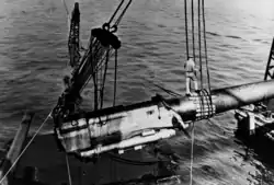Over the next several months, salvage efforts proceeded as workers patched the hull and pumped out the water, finally refloating the ship on 25 March 1942. On 5 April, the ship suffered an accidental explosion at 13:15, most likely the result of a mixture of fuel oil vapor and hydrogen sulfide gas. The explosion dislodged the patch that had been used to cover the forward hole in the hull and damaged watertight doors, which caused serious flooding. Over the next few days, the salvage team had to re-patch the hull and pump it out again. On 9 April, California was able to enter Dry Dock No. 2 in Pearl Harbor; after completing initial repairs, she was refloated on 9 June and remained in port for several months.[5]