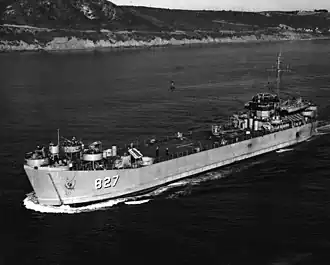 LST-827 received one battle star for World War II service and three stars for the Korean War.