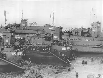 ![]() USS LCI(L)-189 (top) landing at Elba 17 June 1944
