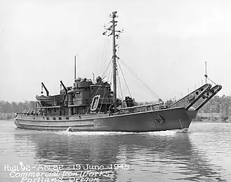 Marietta was laid down by the Commercial Iron Works, Portland, Oregon on 17 February 1945. The ship was launched on 27 April 1945; sponsored by Mrs. Theodore C. Lyster, Jr., and commissioned 22 June 1945, Lt. Richard Haber, USNR, commanding.
