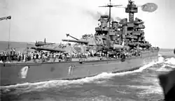 Maryland now joined the Operation Magic Carpet fleet.[15] During the remaining months of 1945, Maryland made five voyages between the west coast and Pearl Harbor, returning more than 8,000 servicemen to the United States. Arriving at Seattle, Washington on 17 December, Maryland completed her Operation Magic Carpet duty. She entered Puget Sound Naval Shipyard on 15 April 1946, and was placed in commission in inactive reserve on 16 July.[15] She was decommissioned at Bremerton on 3 April 1947, and remained there as a unit of the Pacific Reserve Fleet. Maryland was sold for scrapping to Learner Company of Oakland, California on 8 July 1959.[4]