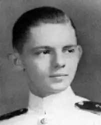 Robert Graham Bradley was born in Washington, D.C., on 26 September 1921. He was appointed to the United States Naval Academy on 9 June 1939, and graduated on 19 June 1942. He completed instruction at the Atlantic Subordinate Command, Service Force, Norfolk, Va. (3 July – 27 October 1942), and on 29 October reported to New York Shipbuilding Corporation, Camden, New Jersey, for the fitting out of light aircraft carrier USS Princeton (CVL-23). He served as a member of the ship's company when Princeton was commissioned on 25 February 1943, and while on board received promotions to lieutenant, junior grade and lieutenant (1 May 1943 and 1 July 1944, respectively), as she took part in operations ranging from the occupation of Baker Island (September 1943) to the Battle of Leyte Gulf (October 1944).[2]