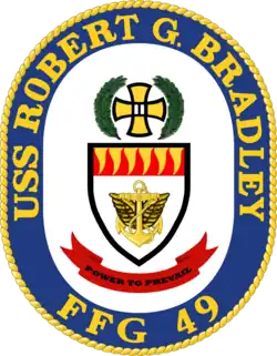 USS Robert G. Bradley (FFG-49) is an Oliver Hazard Perry-class frigate, a decommissioned ship of the United States Navy named for Lieutenant Robert G. Bradley (1921–1944), who was awarded the Navy Cross posthumously for his heroism on USS Princeton during the Battle of Leyte Gulf.