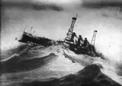 Vermont in heavy seas, probably during the cruise of the Great White Fleet