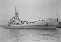 After completing her refit in September, Washington conducted sea trials, followed by a short period of training while based in San Pedro, Los Angeles. She then got underway for the Panama Canal and on 6 October joined TG 11.6 on the way, thereafter passing through the canal and steaming north to the Philadelphia Naval Shipyard. She arrived there on 17 October and took part in Navy Day celebrations on 27 October. Slated to take part in Operation Magic Carpet, the sea-lift operation to bring American service members home, Washington went into the shipyard in Philadelphia to be modified to carry additional personnel. Additional space was provided by substantially reducing the crew, to 84 officers and 835 enlisted men; with the war over, the ship's weapons needed no gun crews. The work was completed by 15 November, when she got underway for Britain. She arrived in Southampton on 22 November. Washington embarked a contingent of Army personnel totaling 185 officers and 1,479 enlisted men and then re-crossed the Atlantic to New York, where she was decommissioned on 27 June 1947.[7]