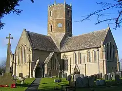 The Church of England parish church of St Mary is cruciform in plan and was completed about 1250. The tower is mounted in the centre of the building rather than at one end, over the crossing between the nave, chancel and transepts, and (unusually) is octagonal (8-sided) in cross-section rather than square. Some of the present windows date from the 17th century. In the south transept is a Jacobean monument to John Saunders, who died in 1638. It has a semi-reclining effigy of Saunders set in a semi-circular coffered arch, with a large plaque surrounded by strapwork. St Mary's church is a Grade I listed building.[6] Its parish is part of the Benefice of Uffington, Shellingford, Woolstone and Baulking.[7]