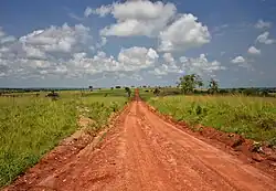 According to a published report in July 2015, 4,000 kilometres (2,500 mi) (19 percent) of the 21,000 kilometres (13,000 mi) national road network was paved.[11] A total of 1,500 kilometres (930 mi) of roads were improved from gravel to bituminous surface between 2005 and 2010.[12] A total of 5,000 kilometres (3,107 mi) of roads are earmarked for tarmacking before December 2016.[13]
