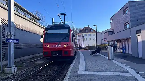 Uitikon Waldegg is a railway station in the village of Waldegg in the municipality of Uitikon in the canton of Zurich, Switzerland. It is located within fare zone 154 of the Zürcher Verkehrsverbund (ZVV).[2] The station is on the Uetliberg line, which is operated by the Sihltal Zürich Uetliberg Bahn (SZU).[3][4][5]