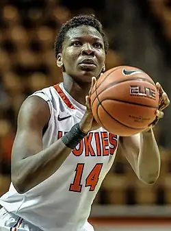 ![]() Uju Ugoka taking a foul shot at Virginia Tech in 2013 | |