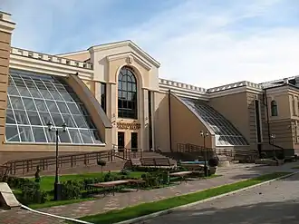 The academy's sports and recreation complex includes a Universal Athletics Center with a total area of 11586 sq.m.,[29] which by the Decree of the Cabinet of Ministers of Ukraine was granted the status of an Olympic training center, and an "Olympic" Hotel.[30] There are 11 gyms, a swimming pool, tennis court and specialized sports grounds.