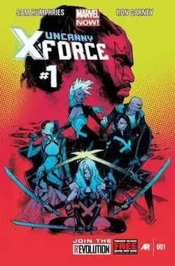 Uncanny X-Force was a comic book ongoing series published by Marvel Comics. Created by writer Rick Remender and artist Jerome Opeña, the first volume of the series continued the story of Wolverine and his X-Force team from the series X-Force, vol. 3.[1] The title was relaunched after issue #35 as part of the Marvel NOW! relaunch event, and the new volume features Psylocke and Storm leading a new team of "outcasts and scoundrels".[2] The second volume was one of two X-Force ongoing titles, along with Cable and X-Force.