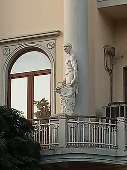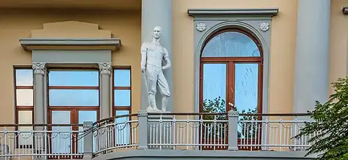 The building of the Union of Composers of Azerbaijan was built in 1912 as a 3-storey property at 27 Molokanskaya Street (now 55 Khagani Alley).[2] Since 1922, the Palace of Culture of Mining Workers has been located here. In 1924, sculptor Stepan Erzya was commissioned to make sculptures for the facade of the building. The statues on the façade are placed in 3 horizontal directions.[3]