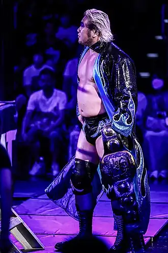 ![]() Suwama with one of the belts in August 2023 | |||||||||||||||||