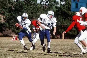 Just like cadets at the academy, all Prep School cadet candidates are required to participate in athletics. The Prep School has a number of varsity sports, including football, men's and women's soccer, and men's and women's basketball. Teams compete against a number of different colleges throughout the state and region.[6] There are also a variety of intramural sports available. Not all athletic time must be spent on organized sports; it may also include weight lifting, running, or another physical activity of the cadet candidates' choosing. The football team usually plays community colleges from the Kansas Jayhawk Community College Conference (KJCCC).