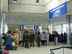 The National Origins Act authorized the formation of the U.S. Border Patrol on May 26, 1924.[6] Two days later, the Labor Appropriation Act of 1924 established the Border Patrol as an agency of the U.S. Department of Labor assigned to prevent illegal entries[7]—primarily along the Mexico–United States border,[6][8] as well as the Canada–U.S. border. The first Border Patrol station began operations in Detroit, Michigan, in June 1924.[9] A second station, in El Paso, Texas, began operations in July 1924.[10] In 1925, coastal patrols began as well.[7] Operations were established along the Gulf Coast in 1927 to ensure that foreign crewmen departed on the same ship on which they arrived.[11] In 1932, the Border Patrol was divided into two offices. Mexican border operations were directed from El Paso, Texas, and Canadian border operations were directed from Detroit, Michigan. The Canadian border operations from Detroit employed more men than the El Paso operations along the Mexican border because of a focus on the prevention of liquor smuggling during prohibition. Franklin Delano Roosevelt's Executive Order 6166 formed the Immigration and Naturalization Service (INS) in 1933 by consolidation of the Bureau of Immigration and the Bureau of Naturalization. Following the outbreak of World War II in Europe, Border Patrol staffing doubled to 1,500 in 1940, and the INS was moved from the Department of Labor to the U.S. Department of Justice.[12] Additional stations were temporarily added along the Gulf Coast, Florida and the Eastern Seaboard during the 1960s after Fidel Castro triumphed in the Cuban Revolution, and that was followed by the Cuban Missile Crisis. The INS was decommissioned in March 2003 when its operations were divided between U.S. Customs and Border Protection (CBP), United States Citizenship and Immigration Services, and U.S. Immigration and Customs Enforcement.