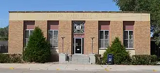 The United States Post Office in downtown Crawford, Nebraska is a historic edifice built to house the Crawford branch of the United States Postal Service. It was built in 1938-1939 and was added to the National Register of Historic Places on May 11, 1992, as part of the Nebraska Post Offices Which Contain Section Artwork MPS.[2][3]